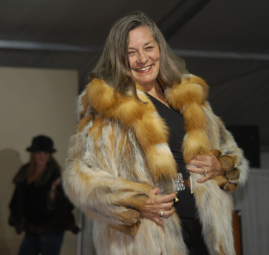 Mayor Nancy Tia Brown models a fur made by Joel Kaye during the Cody High Style Fashion show on Wednesday in Cody, Wyo.